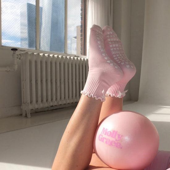 Step into sweetness with our Light Pink Grip Socks, featuring a delicate white ruffle, matching bow, and heart-shaped grips. Perfect for yoga, pilates, or relaxing at home, these socks offer a blend of style and comfort. Made from soft, breathable fabric, they ensure a secure fit while adding a touch of charm to your routine. Treat yourself or someone special to these adorable and practical socks, perfect for enhancing any cozy activity!